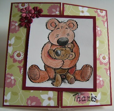 Aber nicht genug, dass sie extra losgezogen ist deshalb; sie hatte auch noch diese wundervolle Karte gemacht. Die ist so goldig. Die Coloration ist der Hammer. (Das Foto hab ich mal schnell von ihrem Blog gemopst) Ich hab mich super doll gefreut.